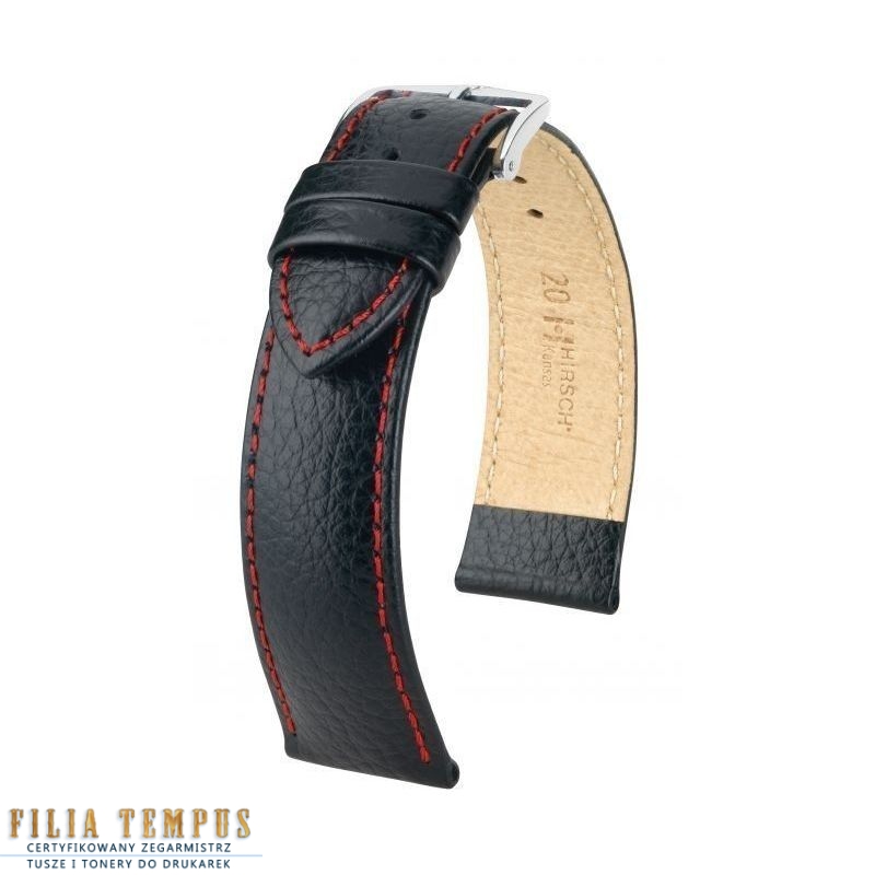 Oryginalny czarny pasek z prawdziwej skóry renomowanej marki. Gwarancja oryginalności. Jesteśmy autoryzowanym sprzedawcą pasków do zegarków Hirsch.