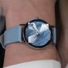 Model Jowissa Facet J5.604.L został wyposażony w pastelowy pasek ze skóry w odcieniu jasnoniebieskim, który doskonale dopasowuje się do nadgarstka i zapewnia wysoki komfort noszenia. Smukła forma, fasetowane szkiełko, oraz precyzyjny szwajcarski mechanizm czynią z tego modelu elegancki zegarek damski na prezent, który łączy funkcję praktycznego czasomierza z rolą stylowej biżuterii. To propozycja dla kobiet ceniących delikatne zegarki z masą perłową i ponadczasową stylistykę.